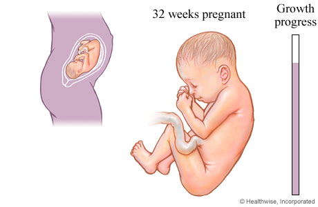 Fetal development at 32 weeks of pregnancyByHealthwise Staff Primary Medical ReviewerAdam Husney, MD - Family Medicine Kathleen Romito, MD - Family Medicine Specialist Medical ReviewerWilliam Gilbert, MD - Maternal and Fetal Medicine Current as ofMarch 16, 2017 Current as of: