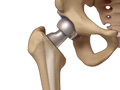 The ceramic or metal ball is attached to a metal stem. This is called a hip implant. The stem is set down into the core of the thighbone (femur). It is firmly fixed in the femur in one of two ways: