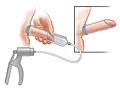 lubricant and insert the penis into the tube. Air is pumped out of the tube, which
