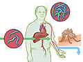 When you're bitten by a malaria-infected mosquito, the parasites that cause malaria are released into your blood and infect your liver cells. The parasite reproduces in the liver cells, which then burst open. This allows thousands of new parasites to enter the bloodstream and infect red blood cells. The parasites reproduce again in the blood cells, kill the blood cells, and then move to other uninfected blood cells. This life cycle of malaria parasites can cause symptoms to come and go.
