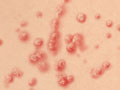 - A rash with tiny blisters or sores. Children tend to have worse skin reactions than adults.