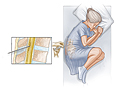 bed on your side with your knees drawn up toward your chest. Or you may sit on