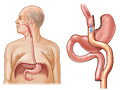 In a Roux-en-Y gastric bypass, only a small part of the stomach is used to create a new stomach pouch, roughly the size of an egg. The smaller stomach is connected directly to the