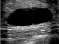 Abnormal: | - A fluid-filled sac (cyst) is present. A fluid-filled lump that is evenly
