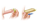 • Find a comfortable position to insert the condom. Some women stand with one foot on a chair. Other women sit on the edge of a chair or lie down.