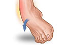 turns inward. It results in stretching and tearing of the ligaments on the