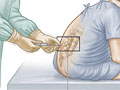 placed at or below the waist. The doctor first uses a local anesthetic to numb
