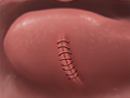 attaches the tongue to the floor of the mouth and closure of the wound with