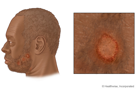 blisterlike bumps. Without treatment, permanent scarring and bare patches can